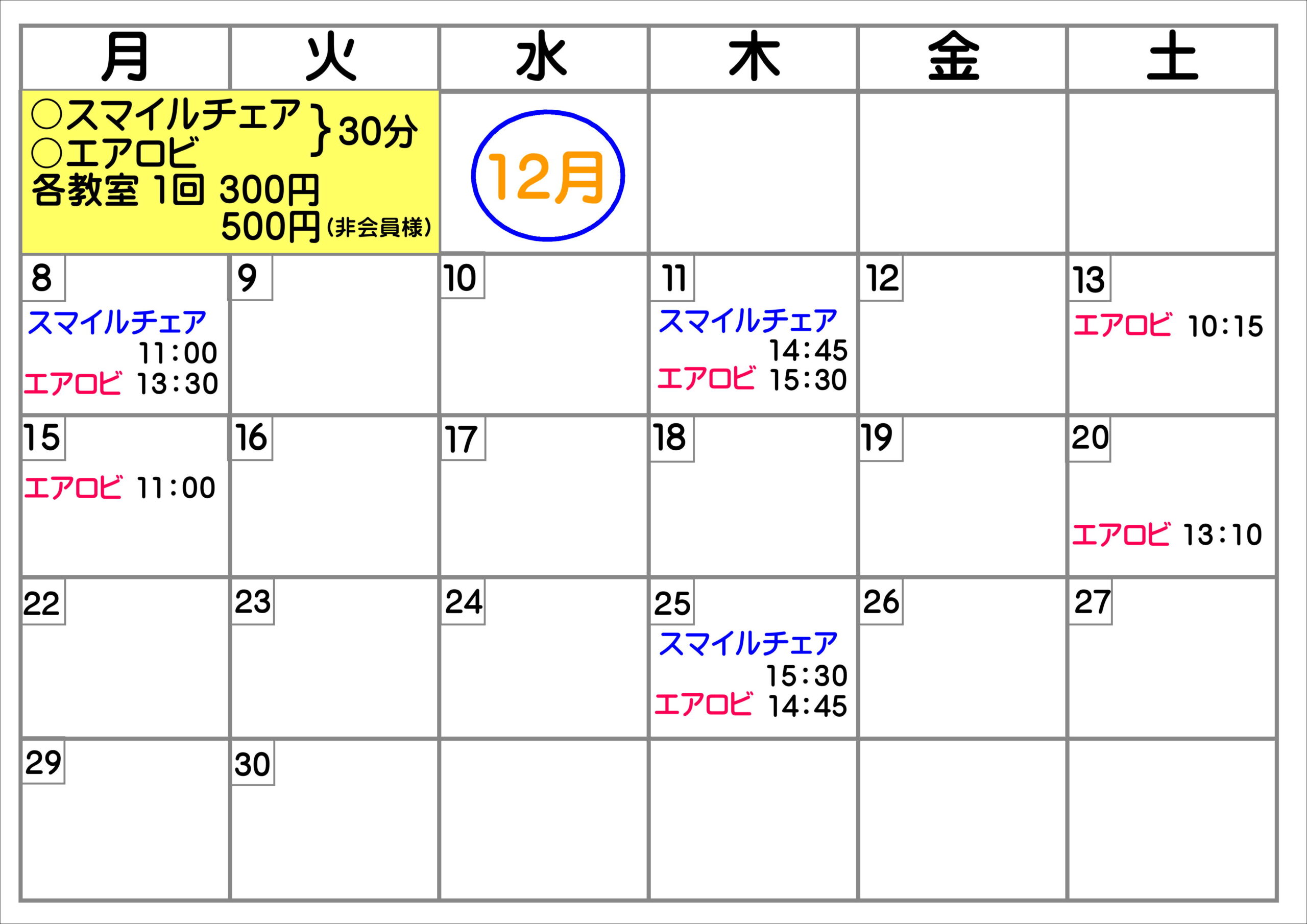 また、イスに座って出来る体操教室(スマイルチェア)と、初心者向けの